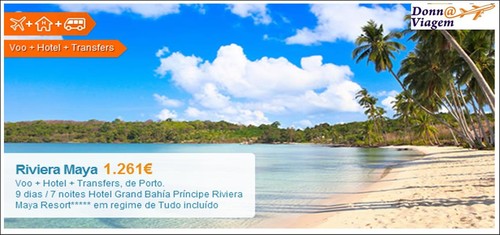 A Riviera Maia mexicana é uma zona turística que vamos encontrar nas Caraíbas do México, que inclui destinos turísticos de primeira grandeza a nível mundial. Esta zona turística tem cerca de 140 km de costa, banhada pelo Mar das C...araíbas, pelo que a sua areia branca, os seus fundos marinhos e as suas águas cristalinas são um importante património desta região. A zona da Riviera Maia é uma zona eminentemente turística, onde as possibilidades de fazer alguma coisa são muito variadas, desde possibilidades a nível do lazer e dos tempos livres na praia, desportos aquáticos como o windsurf e o kitesurf, entre outros, desportos como o golfe, até actividades culturais, tais como dar uma volta pelos diversos templos maias, parques como o Parque de Xcaret, onde, inclusivamente, poderá nadar lado a lado com golfinhos... Estas são, entre outras, as possibilidades de que dispõe neste paraíso das Caraíbas, chamado Riviera Maia, um inacreditável lugar onde pode passar as suas férias, no México. A Riviera Maia conta com todos os ingredientes para ser um destino turístico único, tendo incríveis praias, de areia dourada, de areia branca, com águas cristalinas, com a possibilidade de praticar desportos aquáticos e desportos como as caminhadas e o golfe, monumentos para visitar, todo o tipo de lojas nas quais pode fazer as suas compras e, como não podia deixar de ser, uma das mais vastas e diversificadas ofertas de alojamento do mundo, com hotéis, apartamentos, casas, hospedarias, e vivendas onde pode alojar-se durante as suas férias na Riviera Maia. Tudo isto, claro, na companhia de um clima tropical com boas temperaturas durante os 12 meses do ano, um clima ideal para usufruir das maravilhosas praias das Caraíbas, que nos são oferecidas por esta região, praias de areia dourada e branca, praias onde pode aproveitar o sol, as quentes e transparentes águas, que fazem desta região um marco incomparável para a prática do mergulho com e sem garrafas. Para além disso, são inúmeros os lugares interessantes que pode visitar durante as suas férias na Riviera Maia, lugares que não pertencem a esta região, mas que se encontram muito próximo, à sua volta, tal como Cancún, a Ilha Mujeres, a Ilha Contoy, Chichen Itzá, entre outros. Para repor as forças, na Riviera Maia vai encontrar todo o tipo de restaurantes para comer o que quiser. A gastronomia mais típica desta zona é baseada no peixe e nos mariscos.